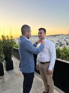Τέλος, ο νέος Πρόεδρος παρέδωσε τα αντίστοιχα pin στα νέα μέλη του Δ.Σ. για το 2023-2024 και η βραδιά έκλεισε με αναμνηστικές φωτογραφίες στη ταράτσα του President Hotel.