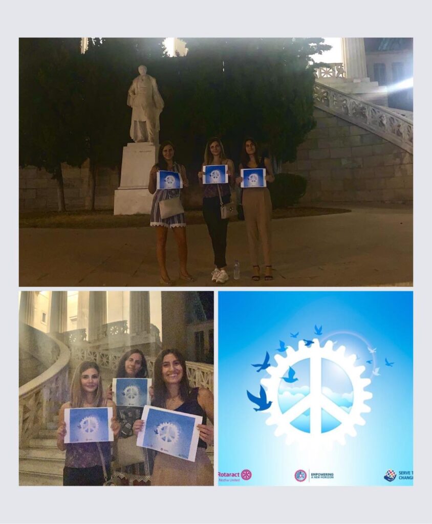 Με αφορμή την Παγκόσμια Ημέρα Ειρήνης (21 Σεπτεμβρίου) ο Όμιλος μας συμμετείχε στην δράση του Ομίλου Ροταράκτ Αιγύπτου. Μέλη μας φωτογραφήθηκαν μπροστά από το κτήριο της Εθνικής Βιβλιοθήκης. Σε περιόδους πολέμου η γνώση αποτελεί το ισχυρότερο όπλο, γι’αυτό και κάθε πρόσβαση σε αυτή απαγορεύεται αυστηρά. Σήμερα, ζώντας σε καιρό Ειρήνης και Ελευθερίας, γιορτάζουμε την ελεύθερη και ασφαλή πρόσβαση όλων στη γνώση, με αυτή τη συμβολική φωτογραφία.