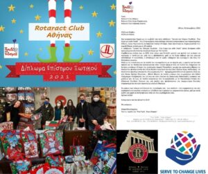 Tη Τέταρτη, 29 Δεκεμβρίου 2021 εκπρόσωποι του Ομίλου μας σε συνεργασία με του Ομίλους Ροταράκτ Κηφισιά-Καστρί και Αγίας Παρασκευής αγόρασαν από μεγάλο κατάστημα παιχνιδιών και παρέδωσαν δώρα για παιδιά του φορέα « Ένα Παιδί – Ένας Κόσμος ».