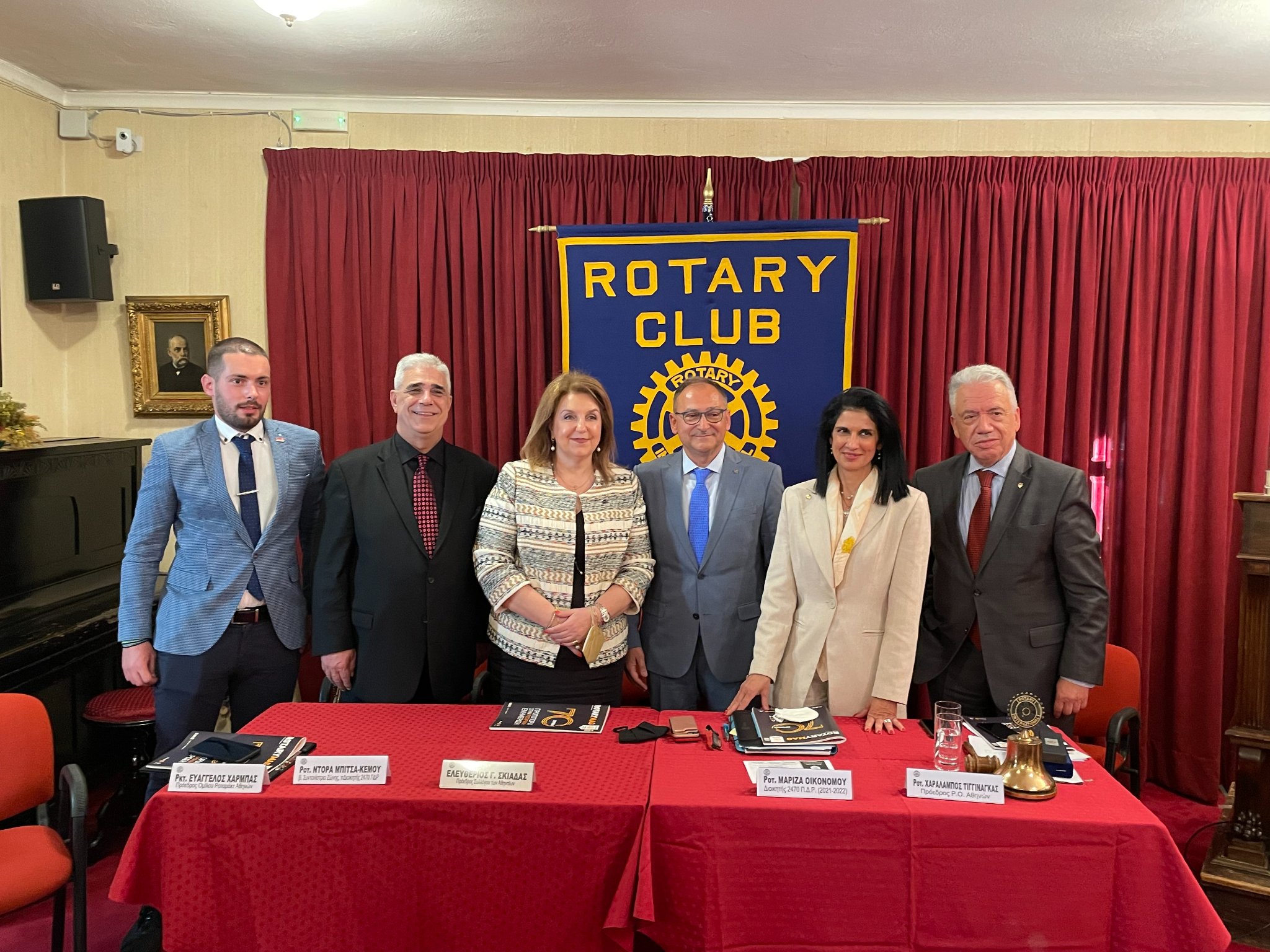 Προσκεκλημένος ομιλητής ήταν ο Πρόεδρος του Συλλόγου των Αθηναίων (του αρχαιοτέρου Συλλόγου της Αθήνας) και Πρόεδρος του Δημοτικού Συμβουλίου του Δήμου Αθηναίων κύριος Ελευθέριος Σκιαδάς. Χαιρετισμό απηύθυναν η Διοικητής της 2470 Περιφέρειας Δ.Ρ. Ροτ. Μαρίζα Ν. Οικονόμου, η β. Συντονίστρια Ζώνης και π.Δ. Ροτ. Ντόρα Μπίτσα-Κέμου και ο Πρόεδρος του Ομίλου μας, Ρτκ. Ευάγγελος Χάρμπας ο οποίος τίμησε τον Πρόεδρο του Ρ.Ο. Αθηνών Ροτ. Χαράλαμπο Τιγγινάγκα με πλακέτα για την αρωγή προς τον Όμιλο Ροαταρακτ Αθηνών κατά τη διάρκεια της θητείας του.