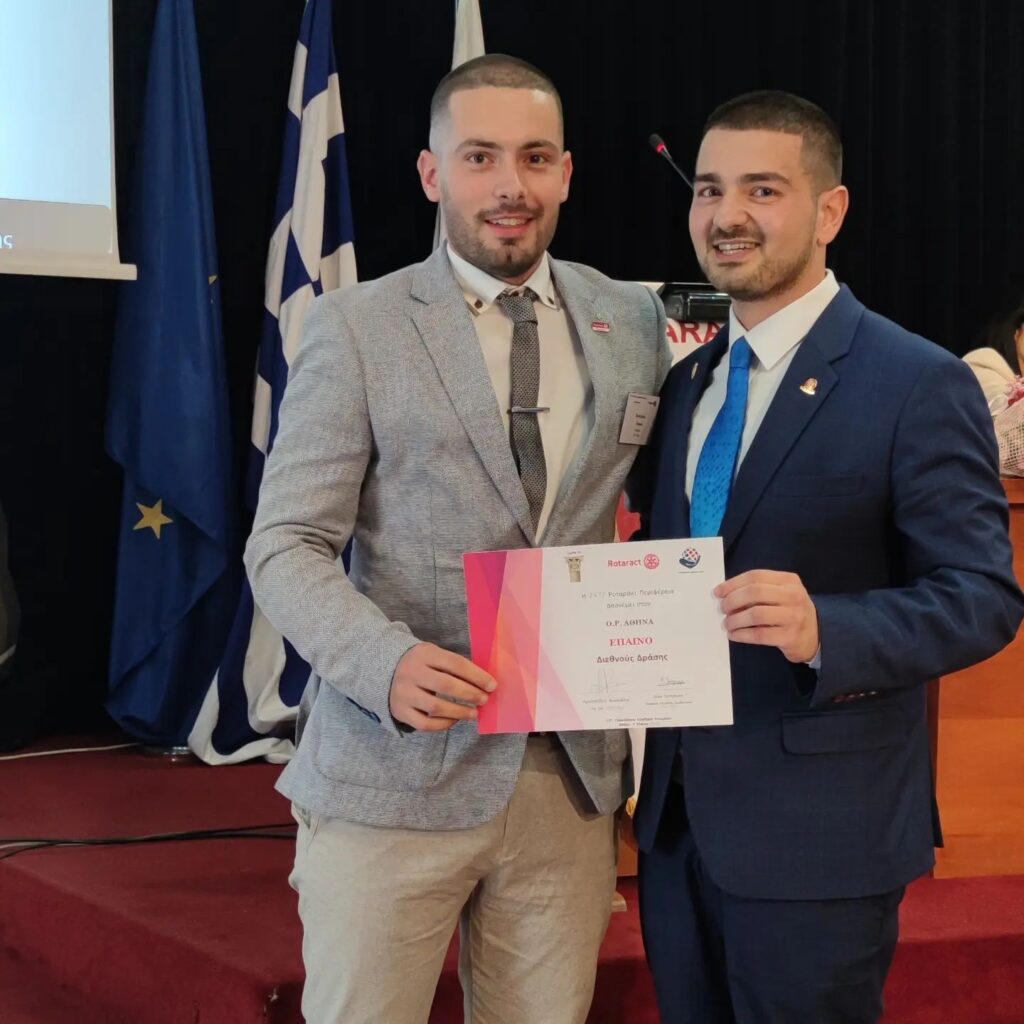 Παράλληλα, ο Όμιλος μας έλαβε έπαινο από τον Εκπρόσωπο της 2470 Ροταράκτ Περιφέρειας, ρτκ. Αριστοτέλη Βλασιάδη, για τη πρωτοβουλία και υλοποίηση Διεθνούς Δράσης(δράση για Παγκόσμια Ημέρα Ειρήνης) κατά το τρέχων έτος.