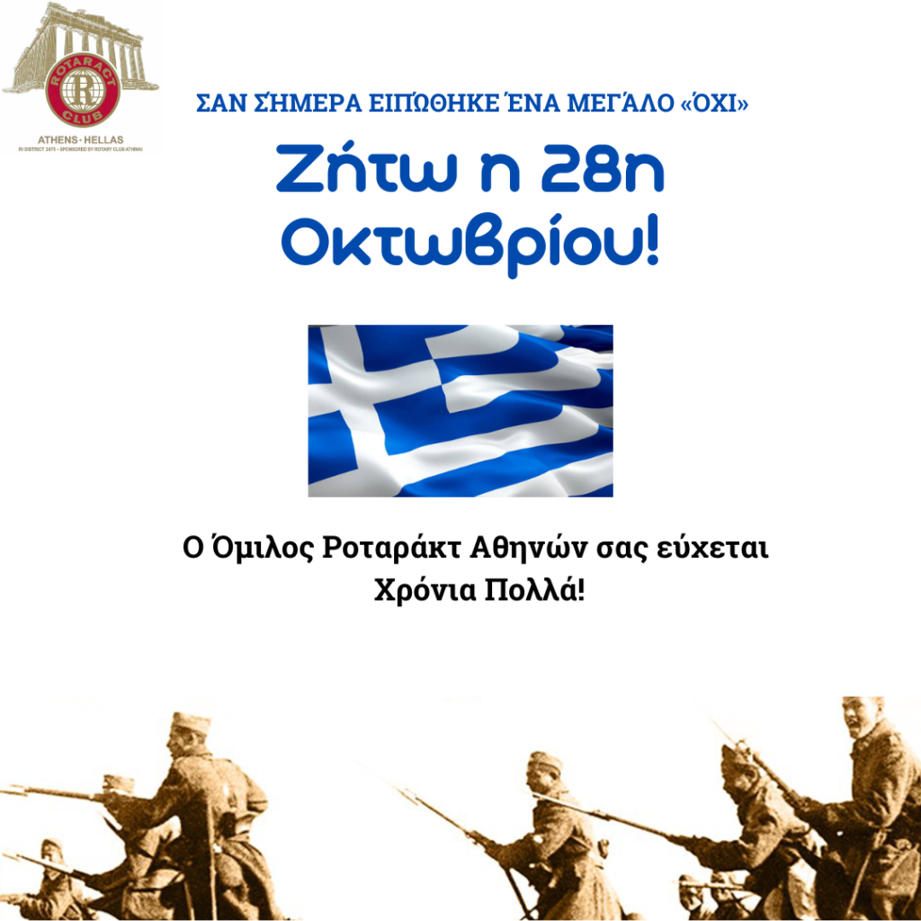Αθήνα, 28 Οκτωβρίου 2023 ΑΝΑΚΟΙΝΩΣΗ Σαν σήμερα το 1940, ειπώθηκε ένα ΟΧΙ του Ιωάννη Μεταξά στο τελεσίγραφο του Ιταλού Πρέσβη Γκράτσι για τις αξιώσεις που έφεραν οι Ιταλοί για την Ελλάδα. Αυτό το ΟΧΙ σηματοδοτούσε την έναρξη του πολέμου το 1940 μεταξύ της Ελλάδας και της Ιταλίας και την είσοδο της χώρας μας στο Β’…